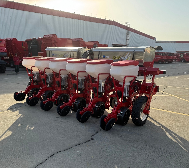 整机全方位监控,配备北斗系统,具有后台查看地理信息、速度检测实时信息及作业面积、各行播种精准度等统计数据,满足大型农场多机系统管理需求;高速电驱气力式排种器,最快作业速度12公里/小时,播种精度高,真正实现抢农时、保质量;株距可任意距离无级可调,各行株距单独设定,可实现单行降密,异种同播,精准满足各地株距要求;独立液压站驱动风机并自动稳定风压,地头怠速时种子能稳定的贴合在种盘上;可调式流量阀精准调节风压强弱,合理匹配不同作物;可实现间作播种,玉米、大豆间作等多种模式任意变型。